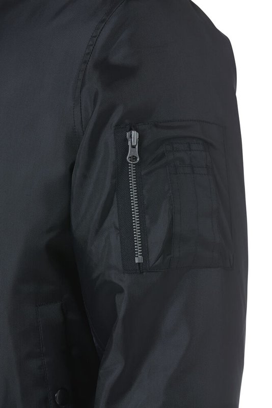 Klassiek bomber jack met originele oranje binnenvoering. Het jack heeft een comfortabele pasvorm, twee steekzakken met drukknoop, een zak op de mouw met SBS-rits en een binnenzak met rits. De jas is verder afgewerkt met elastisch rib in de kraag, boord en onderaan de mouwen voor een optimaal draagcomfort. De PU coating zorgt ervoor dat de jas bescherming biedt bij wisselvallig weer.