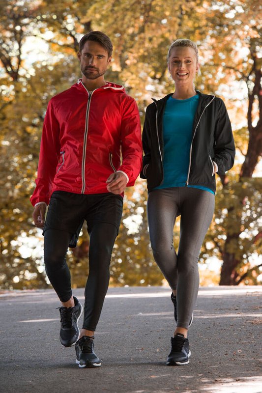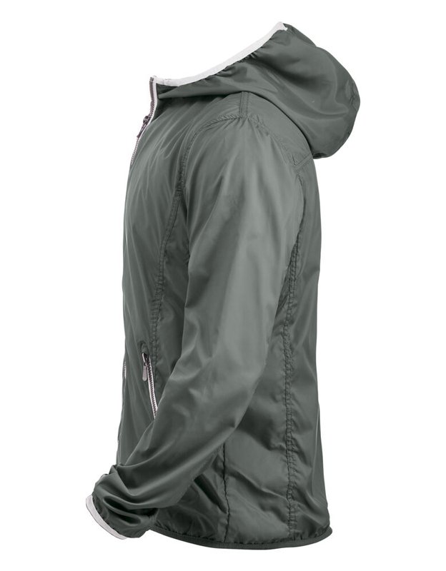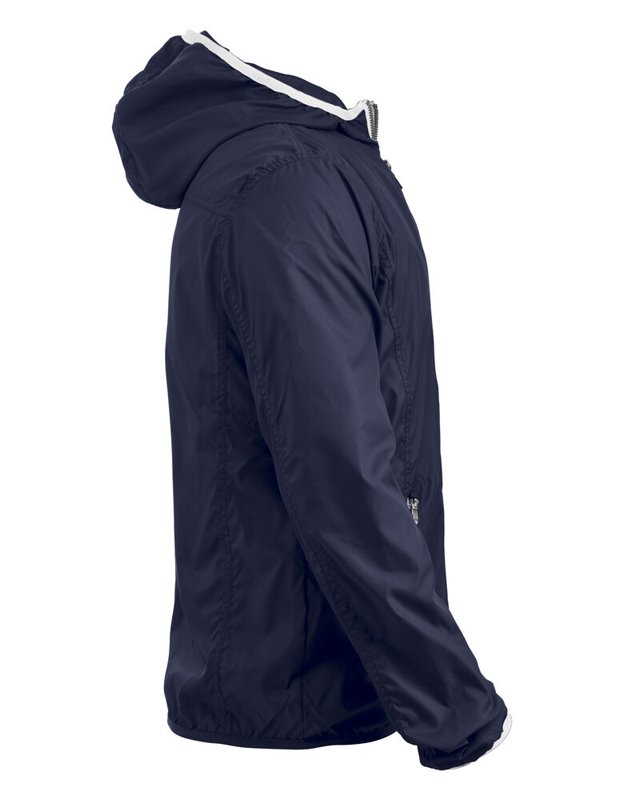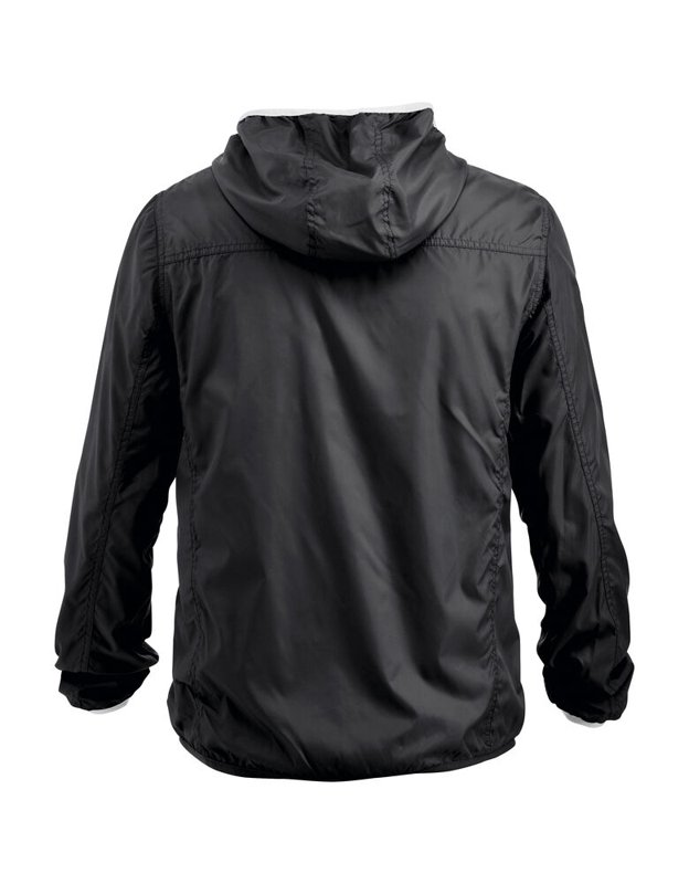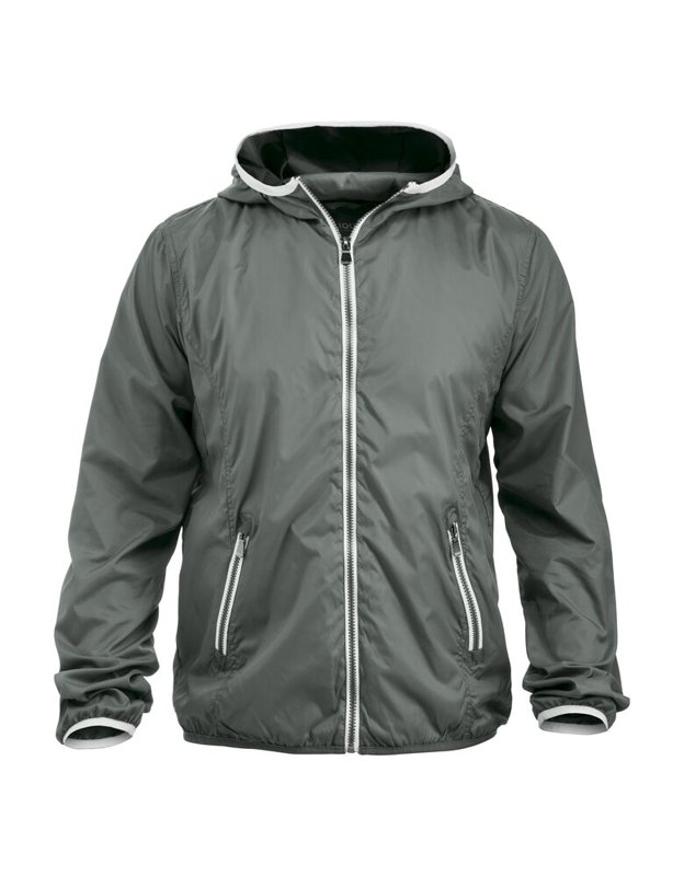 Modern windjack met opvallende contrasterende details bij de ritsen, capuchon en onderaan de mouwen. De jas is zorgvuldig afgewerkt met metallic-look ritsen, mesh-voering en elastisch tape onderaan de mouwen. Dit lichtgewicht windjack zorgt voor een mooie, verzorgde uitstraling in weer en wind.<br />Materiaal: 100% polyester met transparante coating.<br />Geslacht: unisex