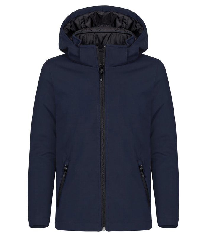 Een modern gesneden, gewatteerd softshell jack voor kinderen. Het jack is voorzien van twee buitenzakken met omgekeerde SBS-ritsen en een afneembare capuchon voor betere kinderveiligheid. Afgewerkt met een gemakkelijk te verwijderen label voor rebranding en een zwarte voering. Gemakkelijk te veredelen dankzij de borduurrits aan de binnenzijde.