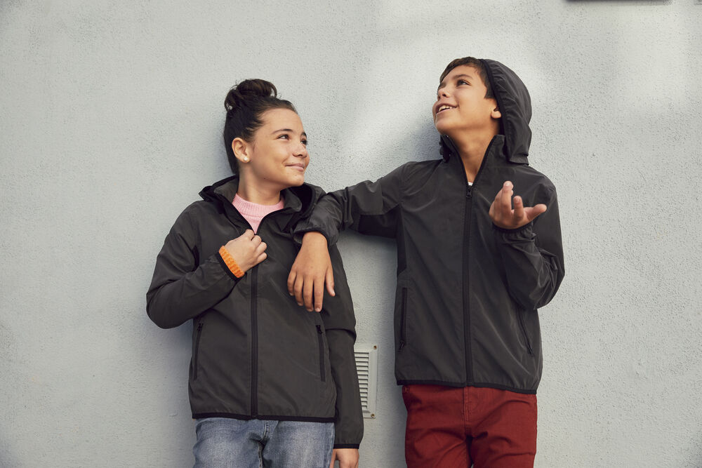Functioneel reflecterend windjack met afneembare capuchon voor betere kinderveiligheid. Dit jack heeft een bird's eye-voering in de capuchon en bij de oksel voor meer comfort en ademend vermogen. Voorzien van 2 zijzakken met rits en 2 binnenzakken. Afgewerkt met contrastband rond de capuchon, boord en mouwen.<br />Materiaal: 100% spun dyed polyester.<br />Kwaliteit: 135 g/m².<br />Geslacht: Junior