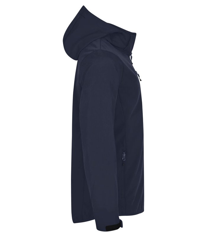 Topjas van Clique, een 3-Laagse Softshell jas met afneembare capuchon en een moderne pasvorm. De jas is leverbaar in diverse kleuren. Ton sur ton omgekeerde rits middenvoor en voorzien van 2 zijzakken en borstzak met rits en 2 binnenzakken. Elastische band in de boord en verstelbare manchetten met klittenband onderaan de mouw.