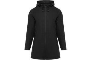 Waterdichte regenjas. Capuchon met klep. Door hitte gesealde ritsen en naden. Contrasterende details in zwart. Twee zijzakken met rits. Split aan de achterkant. Verwijderbaar etiket. Waterbestendig. Het model is 185 cm en draagt maat M.