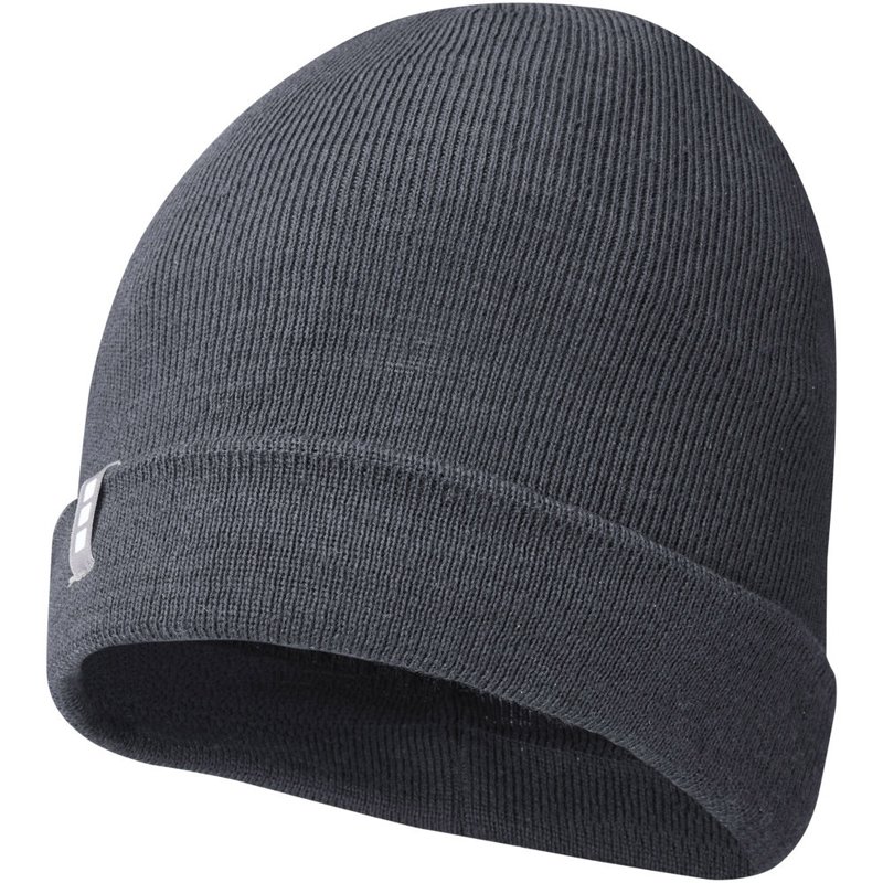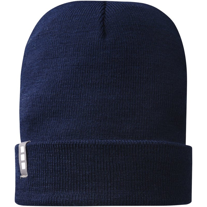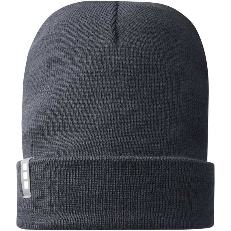 Duurzame promotionele beanie. Enkellaags beanie met dubbel gevouwen rand. Luslabel met merknaam. Polylana®-vezel is het low-impact alternatief voor 100% acryl- en wolvezels, waardoor water en energie wordt bespaard en de CO2-uitstoot tijdens het productie- en verfproces wordt verminderd.