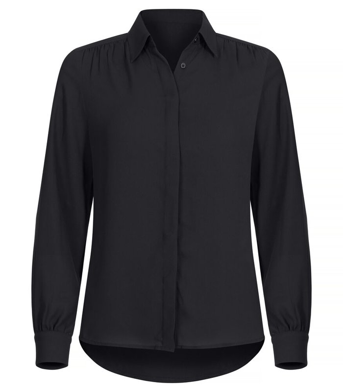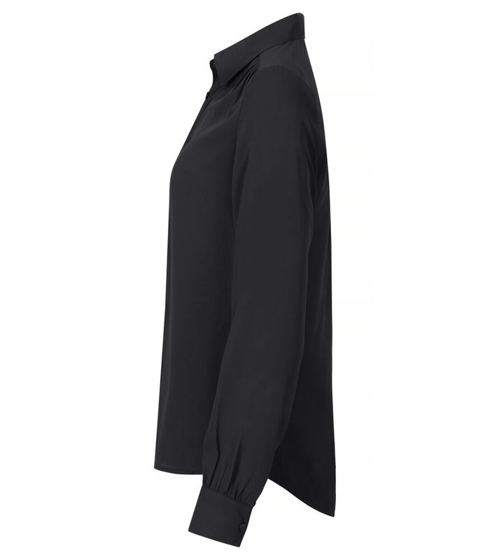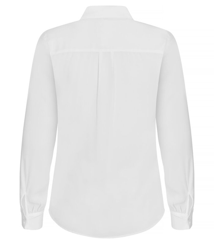 Een tijdloze klassieke blouse. Gemaakt van een lichte en semi-transparante stof die mooi soepel valt. De blouse is voorzien van een verborgen knoopsluiting en plooien aan de voorzijde en mouwuiteinde. Voorzien van een schouderpas aan de achterzijde.<br />Materiaal: 100% polyester.<br />Geslacht: women