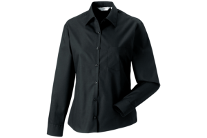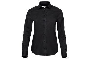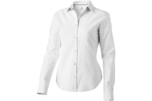 Mooi dames overhemd van 100% micro sergekatoen. Lange comfortabele elegante kraag. De blouse heeft een trendy sluiting met dubbele knopen. De gebogen snit laat het silhouet goed tot z’n recht komen. Wijd uitlopende lange polsen met één knop, eventueel sluitbaar met manchetknoop(956F). Zoom met afgeronde omslag op de mouwen (957F). Deze nieuwe technologische stof is bedacht om de dag rond een elegant voorkomen te bewaren. Borduring op uw overhemden of blouses? Wij helpen u graag. Vraag nu een vrijblijvende offerte aan.