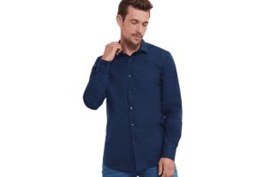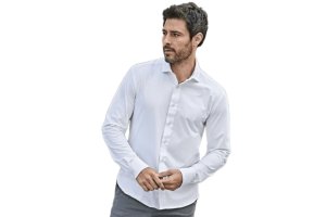 Kariban overhemden gemaakt van 97% katoen / 3% elasthan. Getailleerd overhemd en comfortabele pasvorm. Verstevigde kraag met baleinen. Toon op toon knopen. Dubbel inzetstuk op de rug. Plooitjes aan de achterkant. Afgewerkt met dubbele vouwnaden. Omgeslagen mouwuiteinden met 2 knopen. 2 extra knopen. Afgerond boord aan de onderkant.