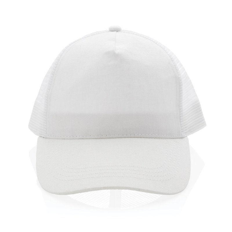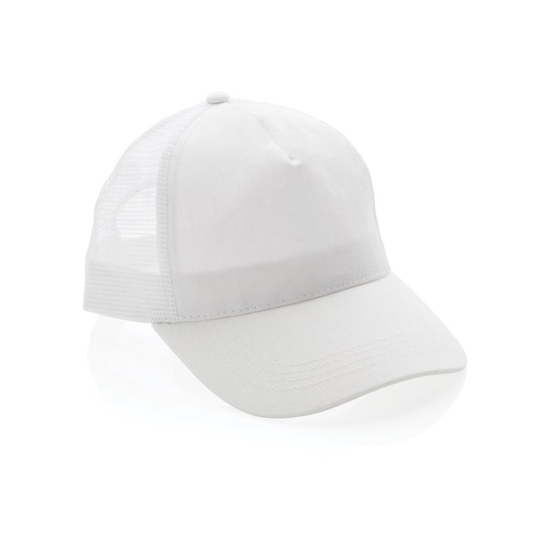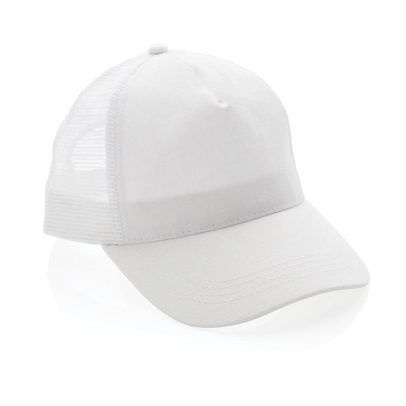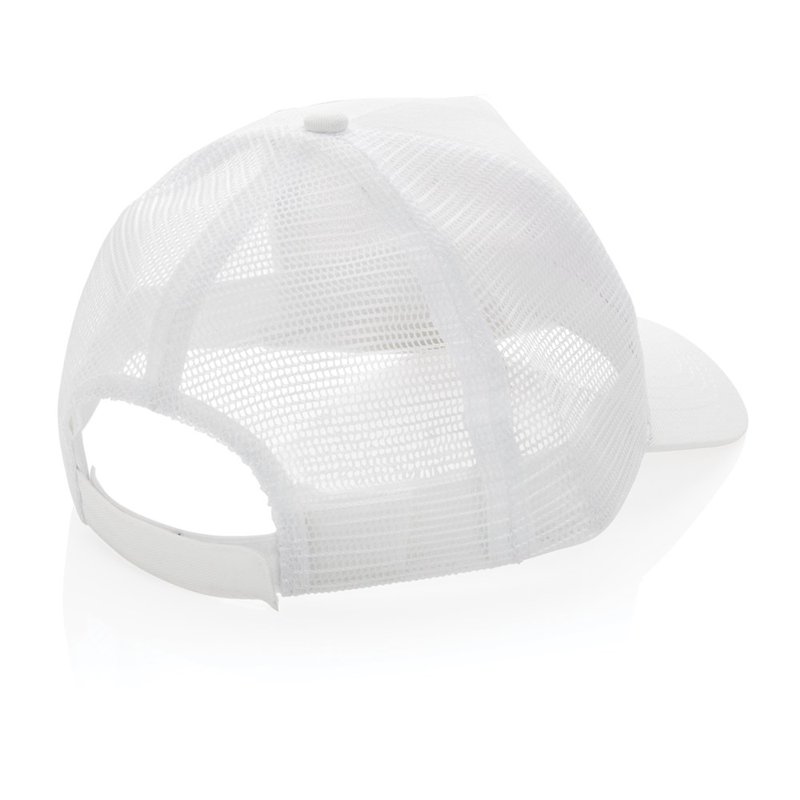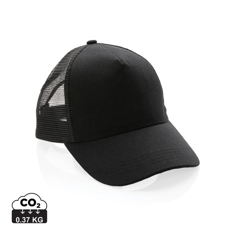 De truckercap heeft een achterkant van rpet mesh met klittenbandsluiting. Waterbesparing is gebaseerd op cijfers in vergelijking met conventionele vezels. Deze berekende indicatie is gebaseerd op betrouwbare LCA-gegevens zoals gepubliceerd door Textile Exchange in hun Material Snapshots 2016.