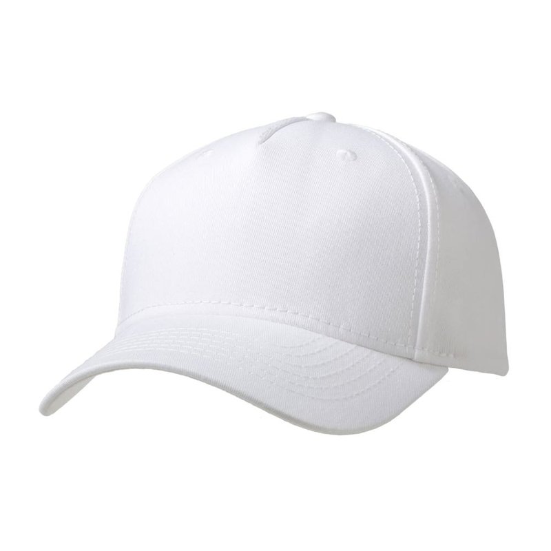 5 panel cap met frontvoering. Medium profile. Metalen buckle sluiting met grommet. Uitgevoerd in cotton twill
