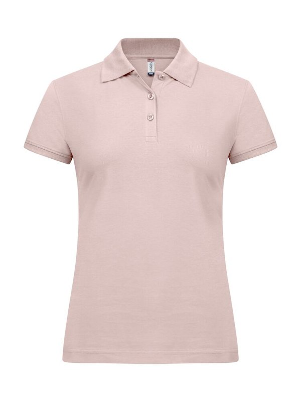 Moderne 100% gekamde katoenen dames polo. Voorzien van 3 ton sur ton knopen en een 1x1 rib kraag.<br />Materiaal: 100% katoen (kleur 92: 99% katoen, 1% viscose / kleur 95: 85% katoen, 15% viscose / kleur 955: 60% katoen, 40% polyester).<br />Kwaliteit: 200 g/m².<br />Geslacht: women