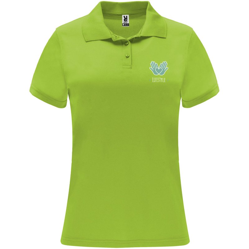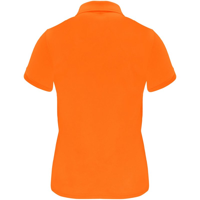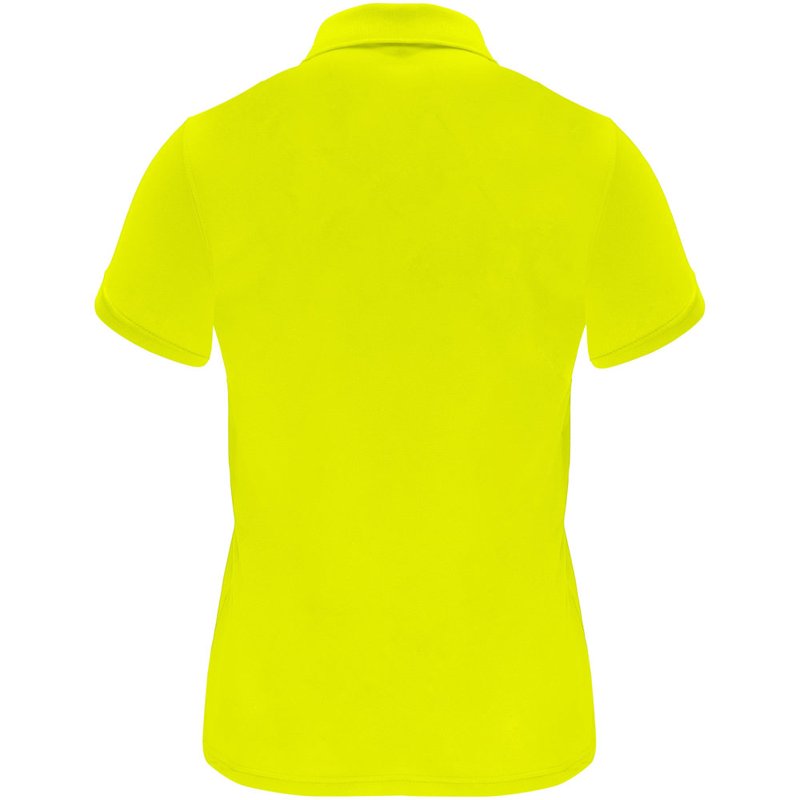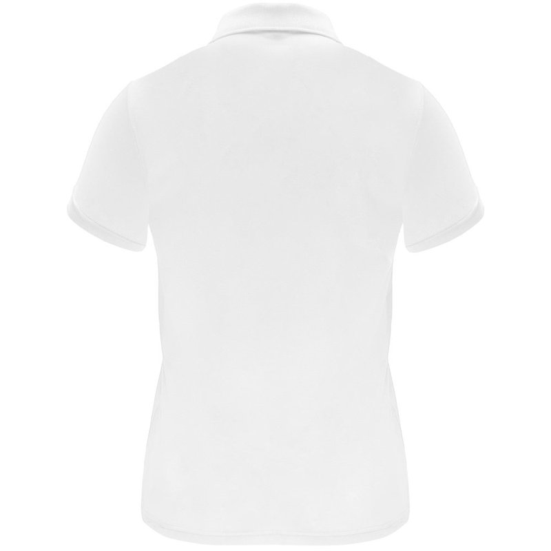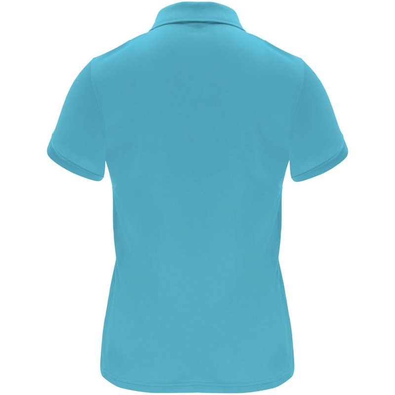 Een technisch poloshirt met korte mouwen, speciaal ontworpen voor dames. Het shirt heeft een gebreide kraag met een sluiting van drie knopen en een getailleerde snit, waardoor het een moderne en vrouwelijke uitstraling heeft. De stof van het shirt is ademend en gemakkelijk wasbaar en droogt snel, waardoor het comfortabel en praktisch is in gebruik. Het etiket is verwijderbaar voor extra comfort. Het shirt is gemaakt van een technische stof die zorgt voor een goede ventilatie en vochtafvoer, waardoor je koel en droog blijft tijdens het dragen. Het model op de afbeelding is 173 cm lang en draagt maat S.