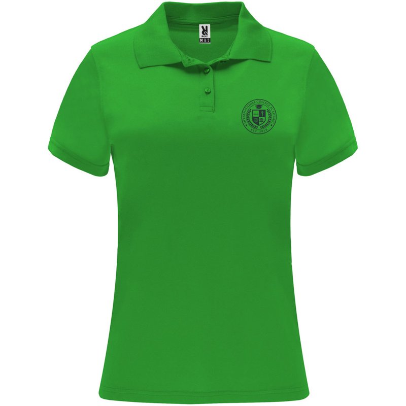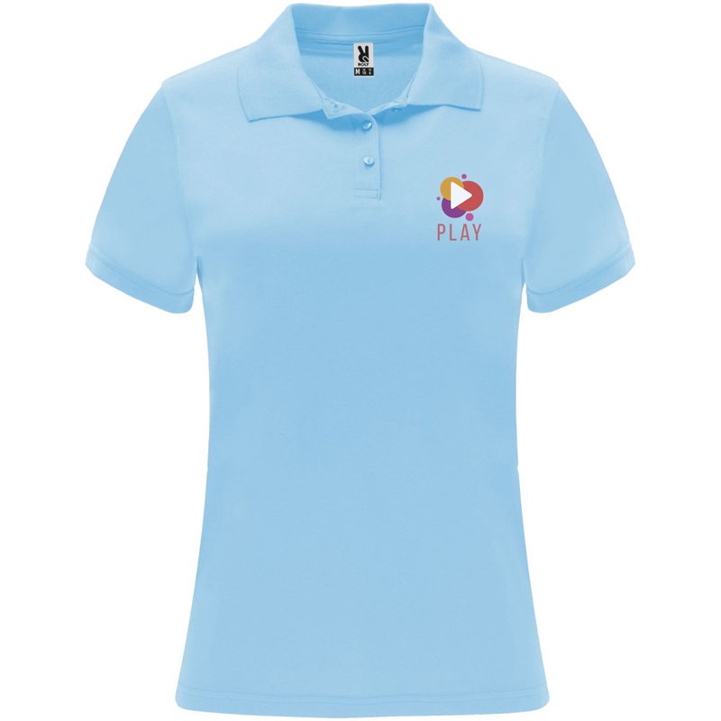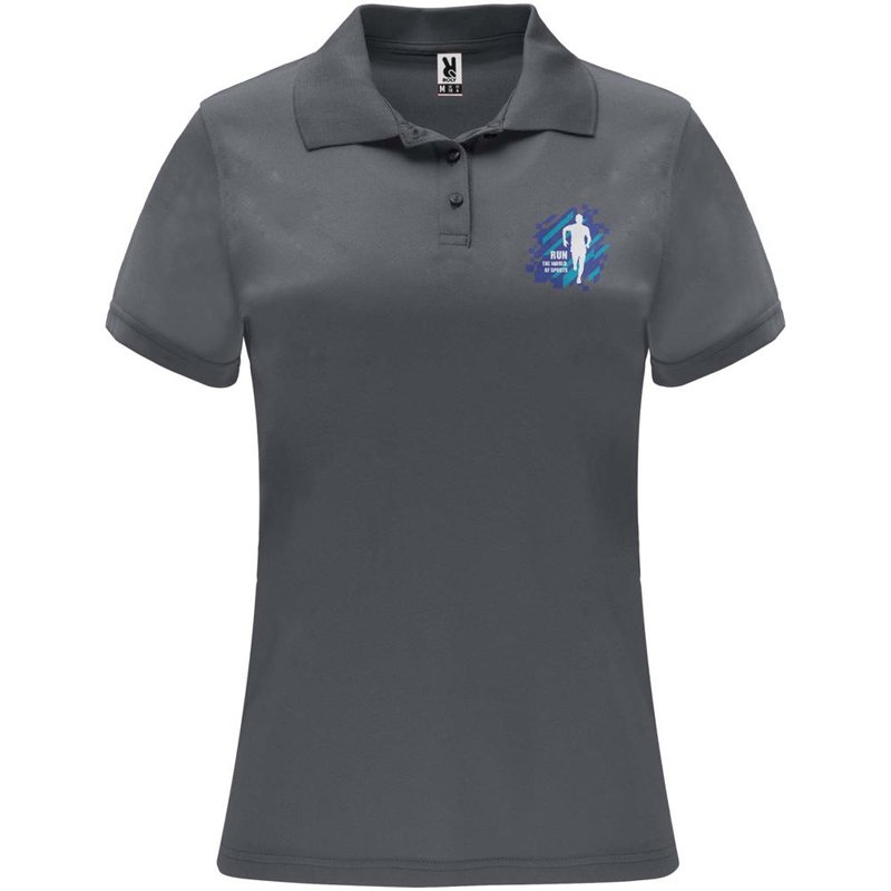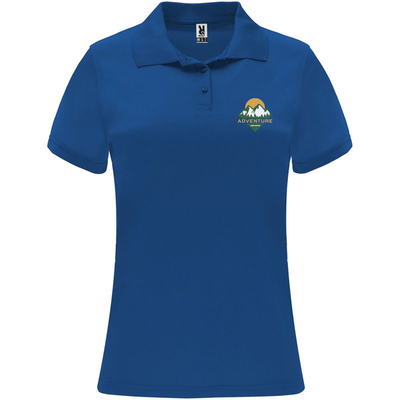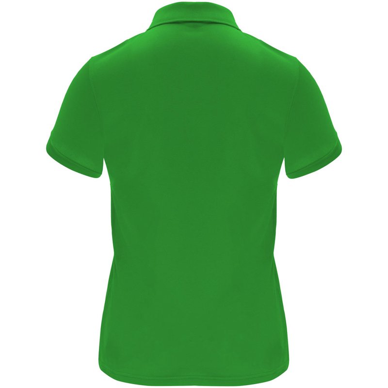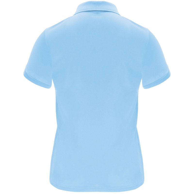 Een technisch poloshirt met korte mouwen, speciaal ontworpen voor dames. Het shirt heeft een gebreide kraag met een sluiting van drie knopen en een getailleerde snit, waardoor het een moderne en vrouwelijke uitstraling heeft. De stof van het shirt is ademend en gemakkelijk wasbaar en droogt snel, waardoor het comfortabel en praktisch is in gebruik. Het etiket is verwijderbaar voor extra comfort. Het shirt is gemaakt van een technische stof die zorgt voor een goede ventilatie en vochtafvoer, waardoor je koel en droog blijft tijdens het dragen. Het model op de afbeelding is 173 cm lang en draagt maat S.