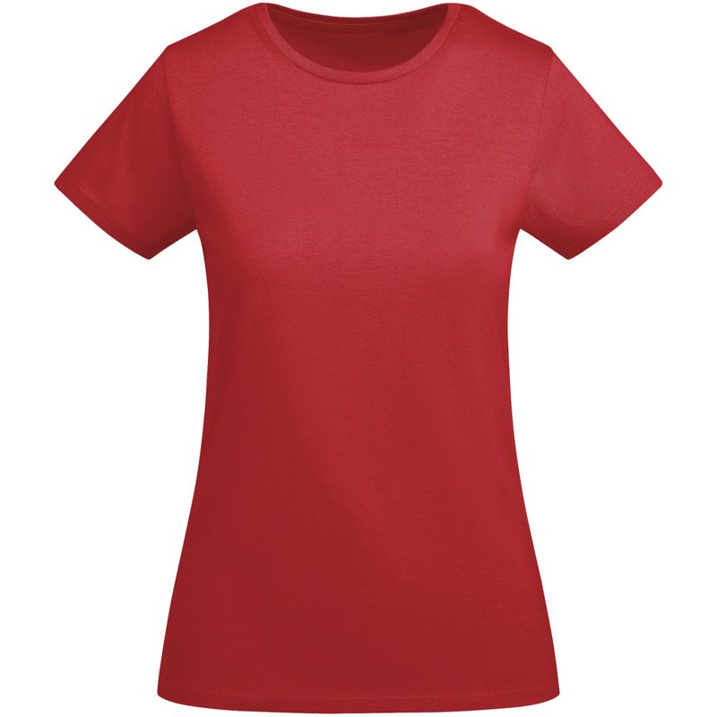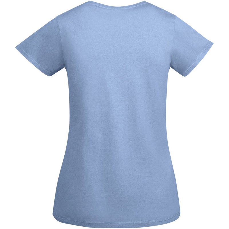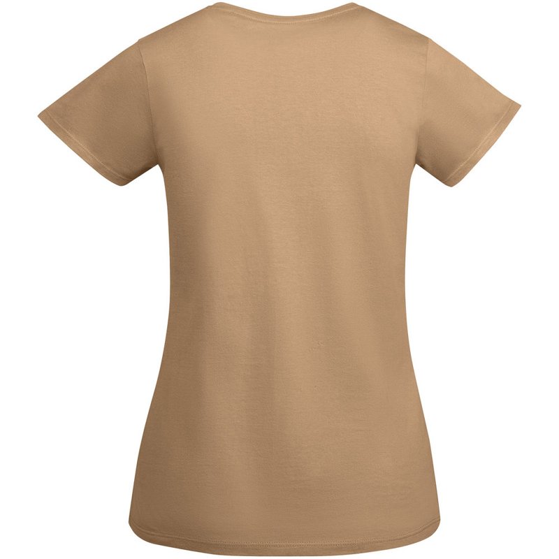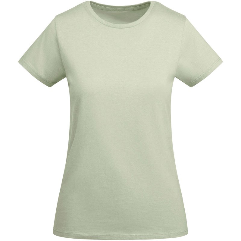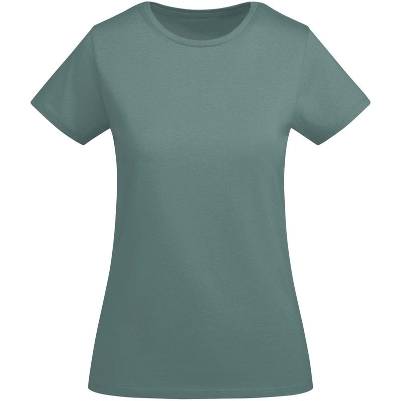 Getailleerd T-shirt met korte mouwen voor dames van OCS-gecertificeerd biologisch katoen. 1x1 geribde ronde hals. Versterkte bedekte naden in de kraag. Zijnaden. Verwijderbaar etiket. OCS biologische stof.