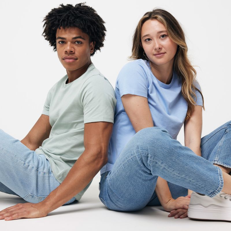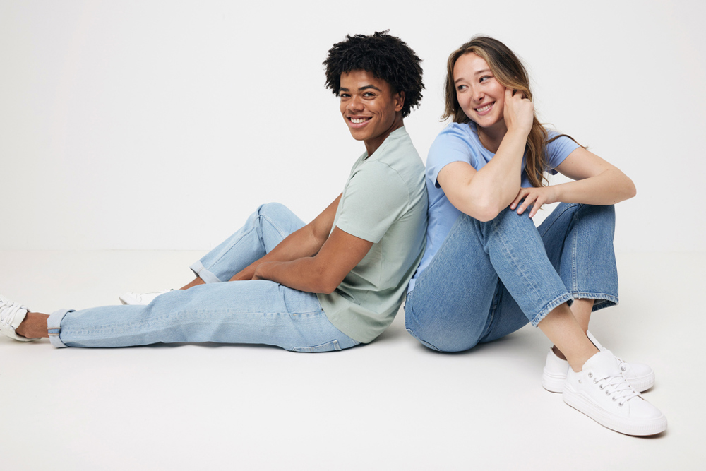 100% katoen unisex t-shirt, waarvan 50% gerecycled en 50% biologisch, in 180 G/M². Het t-shirt heeft een fijne comfortabele pasvorm met een ronde hals, korte mouwen en 1x1 platte ribboord bij de hals.