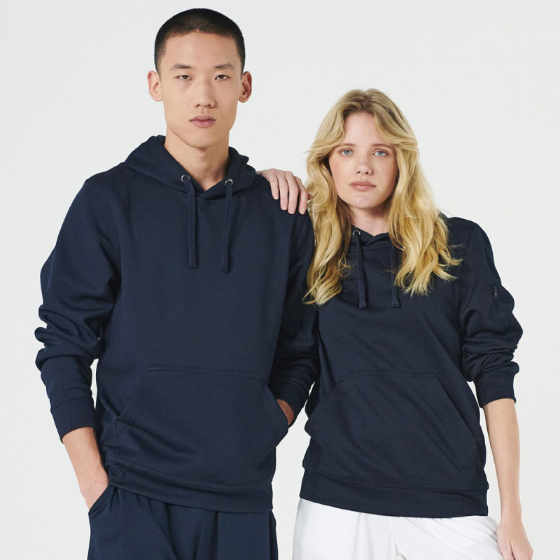 Moderne sweater met capuchon voorzien van een doorvoer voor een koptelefoon, buidelzak en ton sur ton zak op de mouw met rits. De sweater is ingeverfd door middel van Spun Dyed, een milieuvriendelijke methode waarbij minder water, stroom en chemicaliƫn worden verbruikt. Het trekkoord in de capuchon, de rib in de boord en onderaan de mouwen en het visgraat necktape geven de sweater een verzorgde uitstraling. De sterke prijs-/kwaliteitverhouding in combinatie met het milieuvriendelijke productieproces maken van deze sweater een gegarandeerde bestseller.