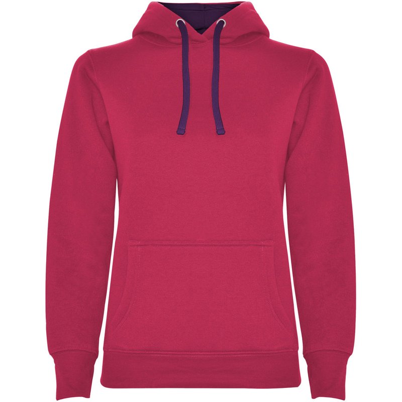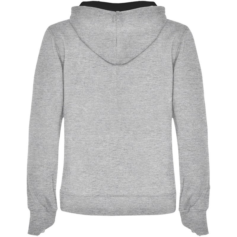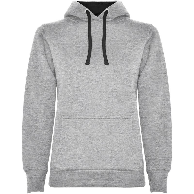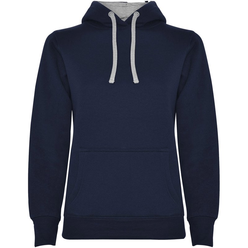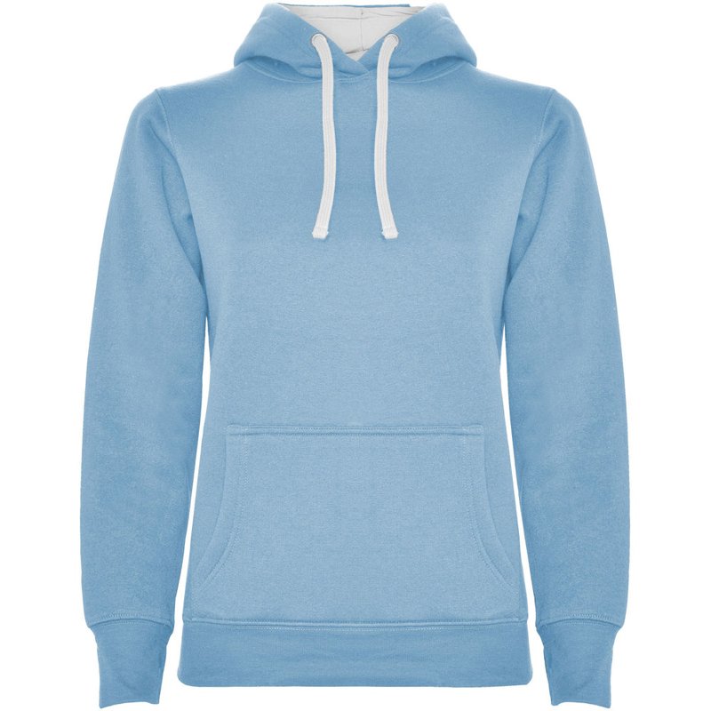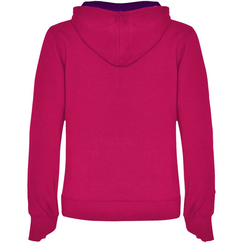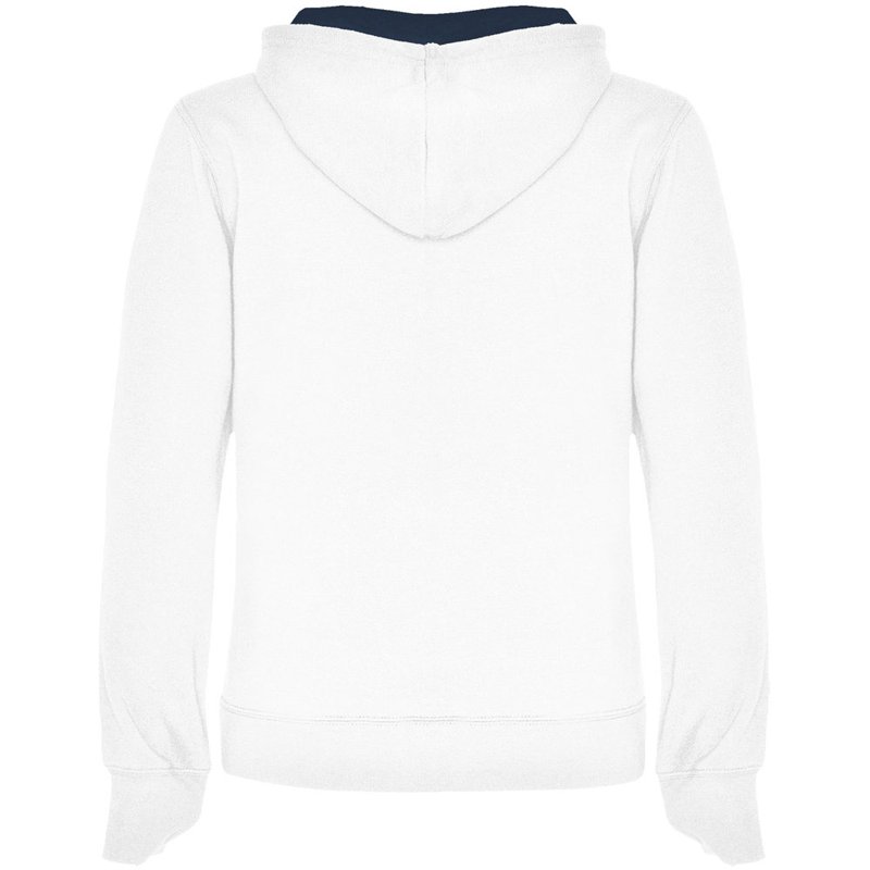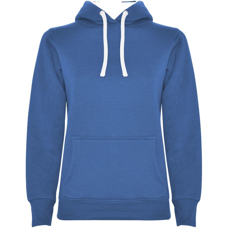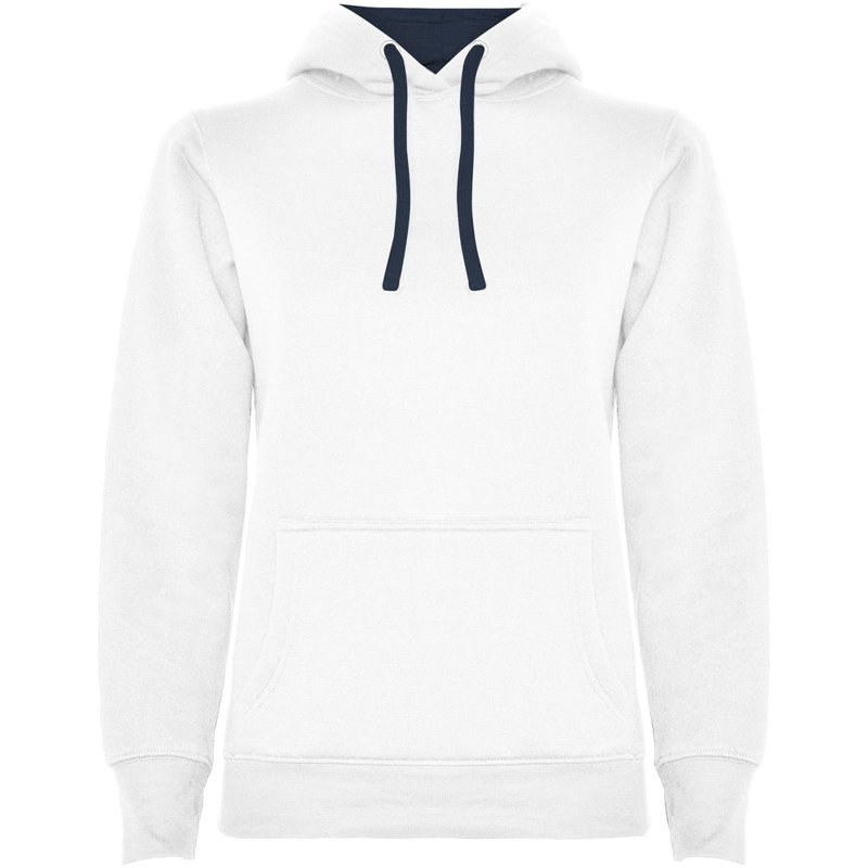 Een vrouwelijk en getailleerd sweatshirt met een stijlvolle tweekleurige capuchon van dubbele stof. Het sweatshirt heeft een contrasterend verstelbaar trekkoord voor een persoonlijke pasvorm en een trendy uitstraling. De kraag is voorzien van bedekte naden voor een nette afwerking en duurzaamheid. Daarnaast is er een praktische kangoeroezak aanwezig om je handen warm te houden of kleine spullen in op te bergen. De manchetten en zoom zijn gemaakt van 1x1 elastaan rib, wat zorgt voor een comfortabele pasvorm en vormbehoud. Een speciaal detail is het duimsplitdetail, waardoor je je duimen kunt steken voor extra warmte en een moderne look. Het etiket is eenvoudig te verwijderen voor extra comfort. Het model op de afbeelding is 179 cm lang en draagt maat S.
