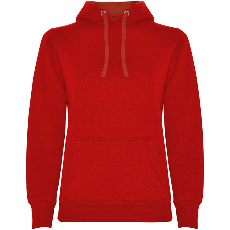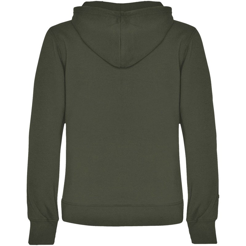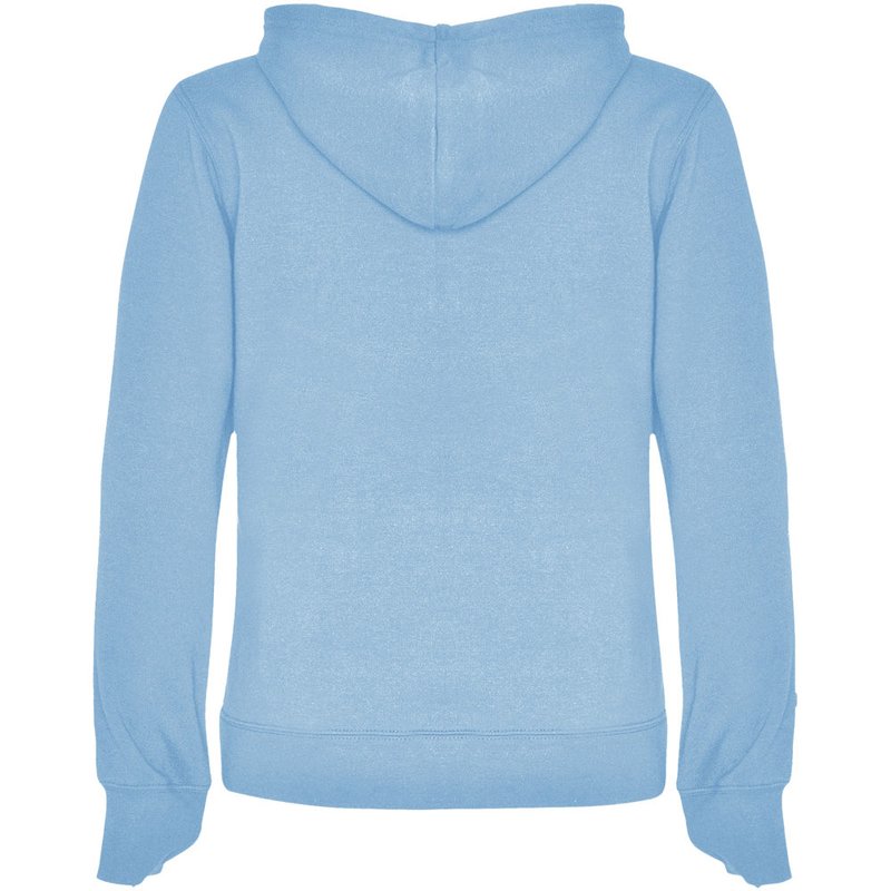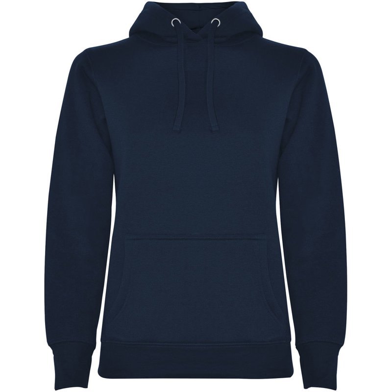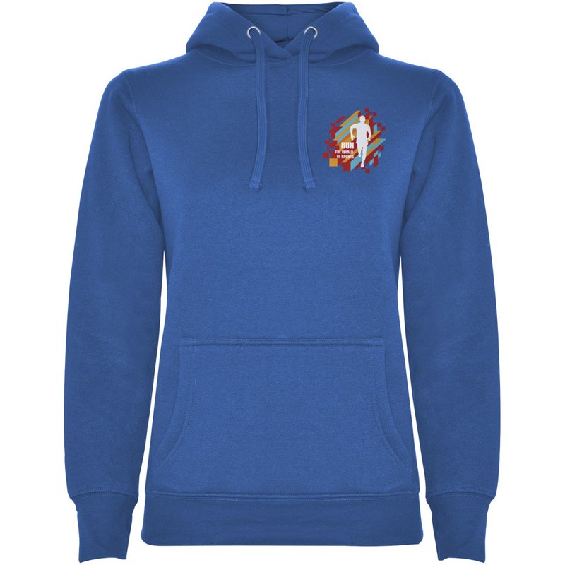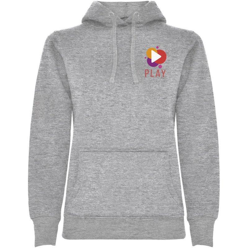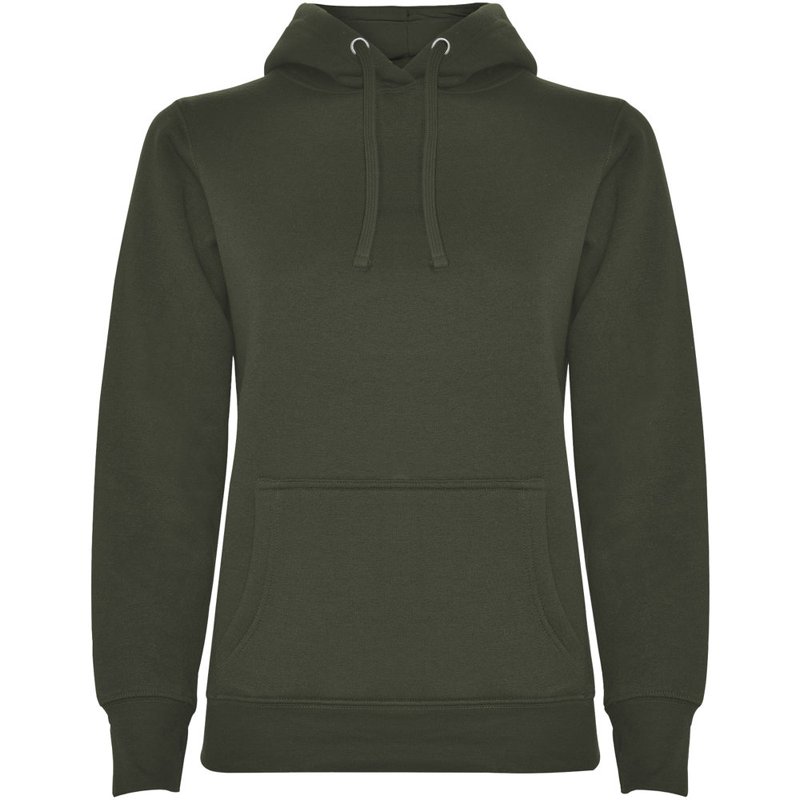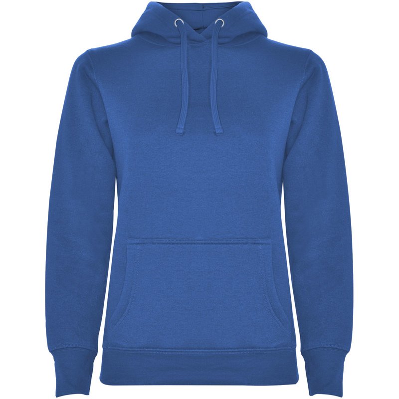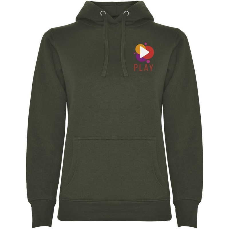 Een vrouwelijk en getailleerd sweatshirt met een stijlvolle tweekleurige capuchon van dubbele stof. Het sweatshirt heeft een contrasterend verstelbaar trekkoord voor een persoonlijke pasvorm en een trendy uitstraling. De kraag is voorzien van bedekte naden voor een nette afwerking en duurzaamheid. Daarnaast is er een praktische kangoeroezak aanwezig om je handen warm te houden of kleine spullen in op te bergen. De manchetten en zoom zijn gemaakt van 1x1 elastaan rib, wat zorgt voor een comfortabele pasvorm en vormbehoud. Een speciaal detail is het duimsplitdetail, waardoor je je duimen kunt steken voor extra warmte en een moderne look. Het etiket is eenvoudig te verwijderen voor extra comfort. Het model op de afbeelding is 179 cm lang en draagt maat S.