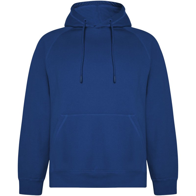 Een unisex hoodie gemaakt van biologisch katoen en gerecycled polyester, waardoor het zowel duurzaam als milieuvriendelijk is. De hoodie beschikt over een kangoeroezak waarin je gemakkelijk kleine spullen kunt opbergen. De capuchon is gevoerd met een enkele jersey voering voor extra comfort. Het verstelbare trekkoord is rond van vorm en de oogjes zijn geborduurd voor een stijlvolle uitstraling. De manchetten en tailleband zijn gemaakt van 2x1 geribde stof, wat zorgt voor een goede pasvorm en vormbehoud. Het etiket van de hoodie is verwijderbaar voor extra comfort. Het wordt individueel verpakt in gerecyclede materialen, wat bijdraagt aan het verminderen van afval. Het mannelijke model op de afbeelding is 185 cm lang en draagt maat L, terwijl het vrouwelijke model 168 cm lang is en maat S draagt.