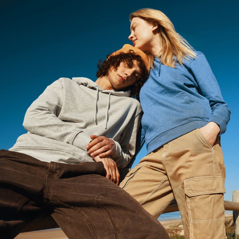 De samenstelling is 100% katoen, waarvan 50% gerecycled en 50% biologisch, in 340 G/M². Geen mix met synthetische stoffen, dus het is recyclebaar tot nieuwe producten van katoen. De zachte, gebrushte binnenkant zorgt voor extra draagcomfort. Het gebruik van echte gerecyclede en biologische stoffen en claims over de impact op het milieu zijn gevalideerd door het gebruik van de AWARE™ fysieke tracer en blockchain-technologie.