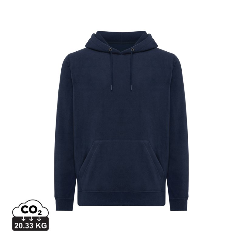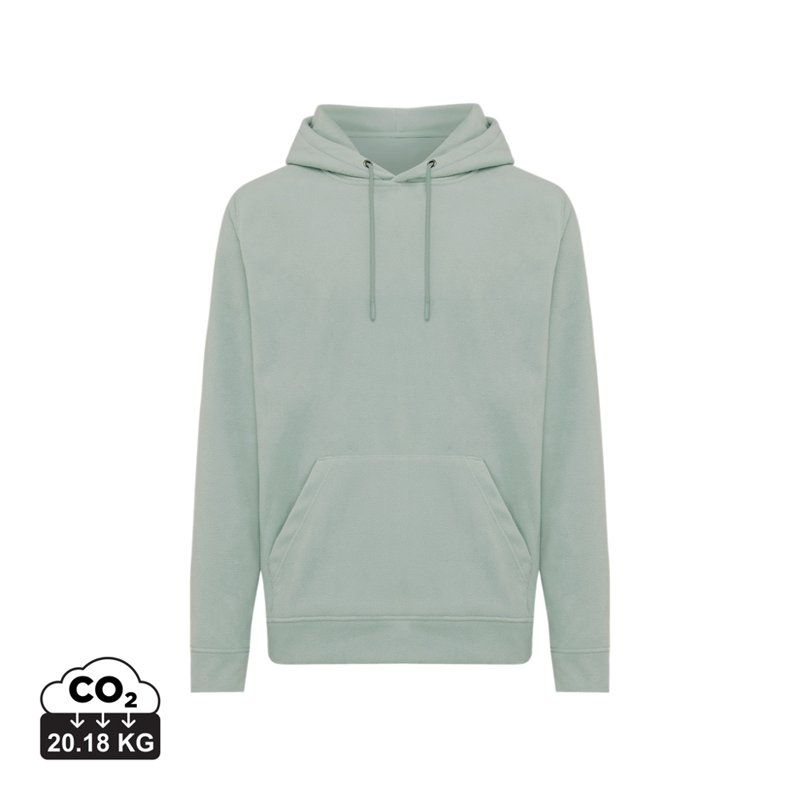 Unisex microfleece hoodie gemaakt van 100% gerecycled polyester van 240 G/M². Deze fleece hoodie omhult je in zachtheid en warmte. Hij heeft een handige kangoeroezak, een dubbel gelaagde capuchon met een tonale trekkoord en metalen oogjes. De binnenkant van de capuchon is gemaakt van geweven stof en biedt de mogelijkheid voor een persoonlijke opdruk aan de binnenkant van de nek. De onderzoom en mouwboorden zijn gemaakt van zelfstof voor extra zachtheid.