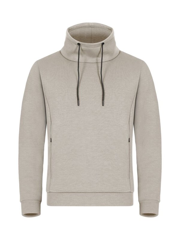 Hobart is een sweatshirt met hoge kraag in een zacht aanvoelende air-layer stof. De luchtlaag tussen de 2-laagse stof biedt extra warmte terwijl het licht aanvoelt. Het polyester in deze stof is van gerecycled materiaal. Hobart is voorzien van 2 verborgen zijzakken met rits en manchetten en boord in shellstof. Afgewerkt met trekkoord in de kraag en een gemakkelijk te verwijderen label voor rebranding.<br />Materiaal: 80% gerecycled polyester, 15% viscose, 5% elastaan.<br />Kwaliteit: 300 g/m².<br />Geslacht: men