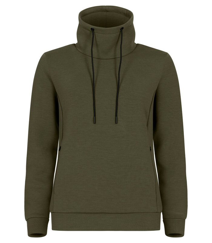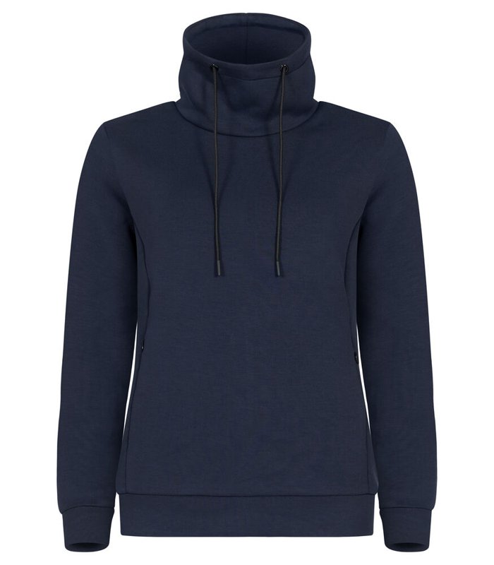 Hobart is een sweatshirt met hoge kraag in een zacht aanvoelende air-layer stof. De luchtlaag tussen de 2-laagse stof biedt extra warmte terwijl het licht aanvoelt. Het polyester in deze stof is van gerecycled materiaal. Hobart is voorzien van 2 verborgen zijzakken met rits en manchetten en boord in shellstof. Afgewerkt met trekkoord in de kraag en een gemakkelijk te verwijderen label voor rebranding.<br />Materiaal: 80% gerecycled polyester, 15% viscose, 5% elastaan.<br />Kwaliteit: 300 g/m².<br />Geslacht: women
