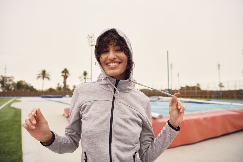 Hoogwaardig capuchonvest met een moderne uitstraling. Het vest is gemaakt van zacht, soepel en comfortabel polyester. De capuchon is gemakkelijk te verstellen middels een trekkoord. Verder heeft het vest twee voorzakken met rits, binnenzakken en een handige doorvoer voor bijvoorbeeld een koptelefoon Het vest sluit mooi aan op de Odessa broek. De behandeling met softener zorgt ervoor dat de sweater zacht aanvoelt.<br />Materiaal: 100% polyester.<br />Kwaliteit: 215 g/m² (kleur 92 en 95: 240 g/m²).<br />Geslacht: women