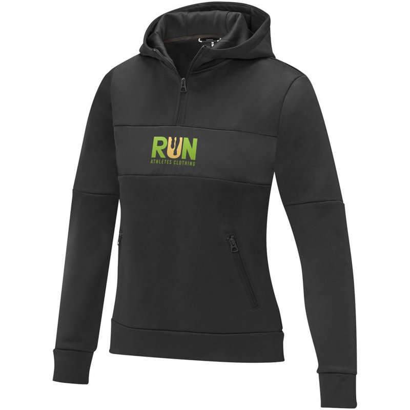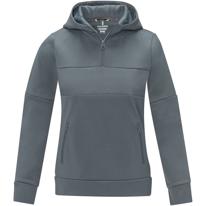 Kwartritssluiting. Anorakmodel. Voorzakken met rits. Ophanglus met merknaam. Easy grip ritstrekkers. Gevormde naden en flatteus getailleerde pasvorm. Transfer maatlabel voor extra comfort.
